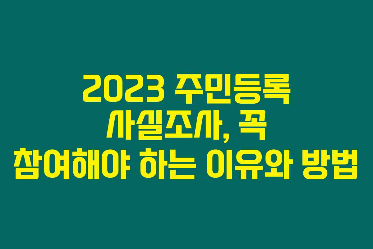 정말 많은 분들이 주민등록 사실조사라는 용어를 들어봤을 거예요. 하지만 자세히 그 의미를 아는 분은 많지 않지 않나요? 주민등록 사실조가는 주민의 실제 거주지와 주민등록상 거주지가 맞는지를 확인하는 사업이에요. 이는 정부에서 진행하는 중요한 업무로, 정확한 인구 데이터 확보를 위한 중요한 통로랄 수 있지요.