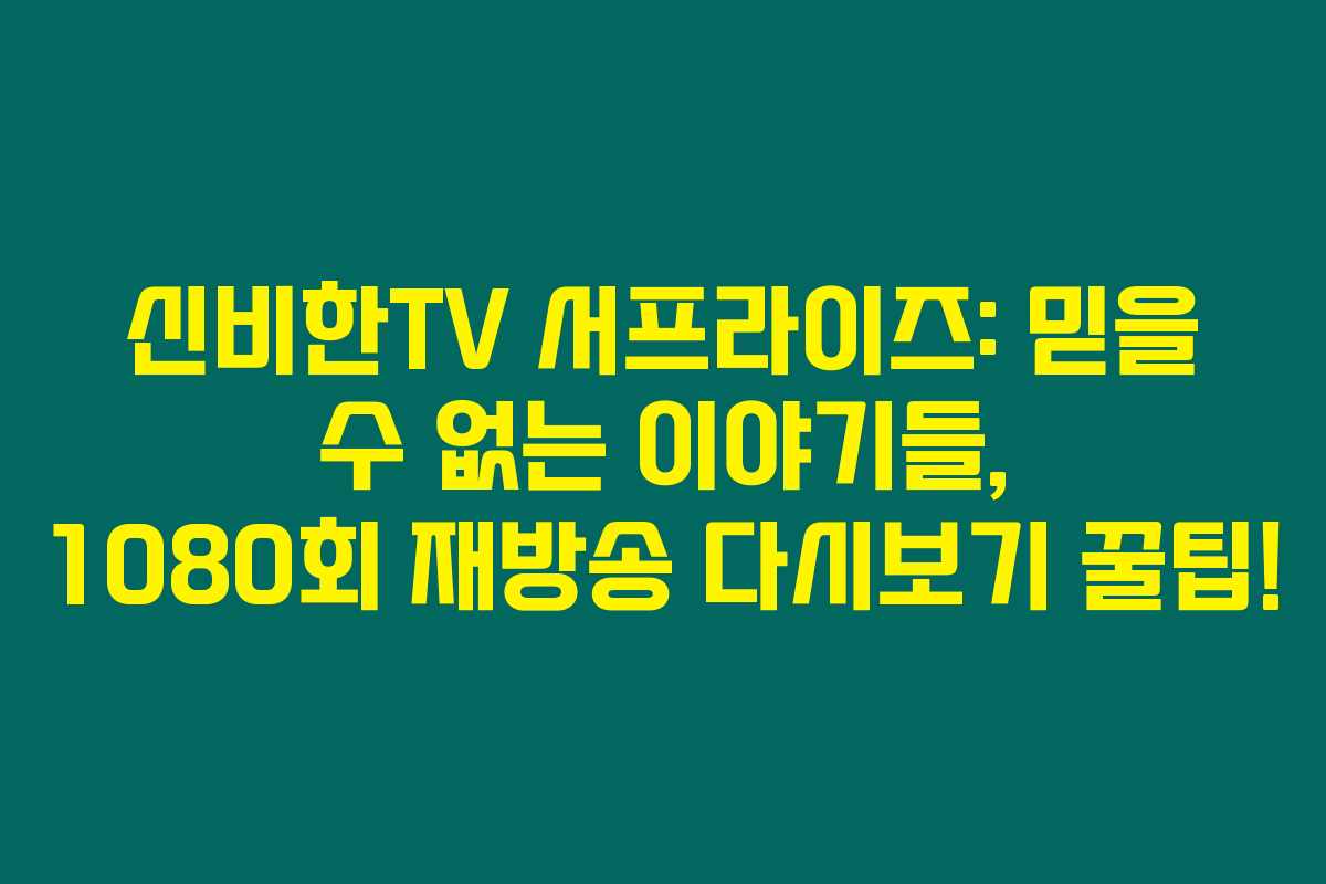 신비한TV 서프라이즈를 사랑하는 시청자분들께는 항상 재방송을 놓치지 않는 것이 중요하잖아요? 그 날 방송을 한 번 놓치면 다시 보기 위한 여러 방법을 찾아야 하고 귀찮을 때도 많지요. 특히 1080회 에피소드에는 너무 매력적인 주제들이 많았어요.