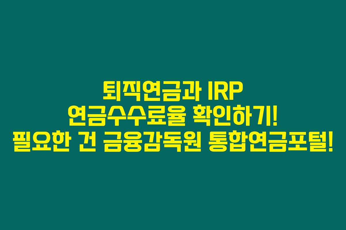 IRP 연금 수수료는 금융감독원 통합연금 포털에서 조회할 수 있어요. 관련 수수료를 쉽게 비교할 수 있죠.