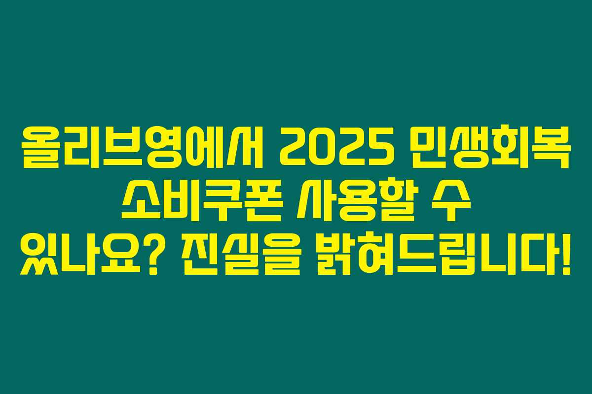 2025 민생회복 소비쿠폰에 관한 이야기가 요즘 떠들썩하죠? “올리브영에 가면 사용할 수 있겠지?” 라고 생각하셨던 분들 많으실 텐데요. 앞으로의 소비 계획을 위해서는 이 정보가 정말 중요합니다. 올리브영의 소비쿠폰 사용 여부와 관련된 모든 진실을 확인해 보세요!