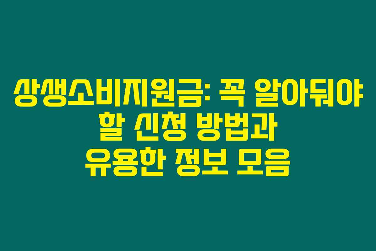 상생소비지원금은 어려운 시기에 우리가 함께 소비하면서 도움을 줄 수 있는 기회랍니다. 관련 정보를 잘 확인하시고, 놓치는 일 없도록 하세요!