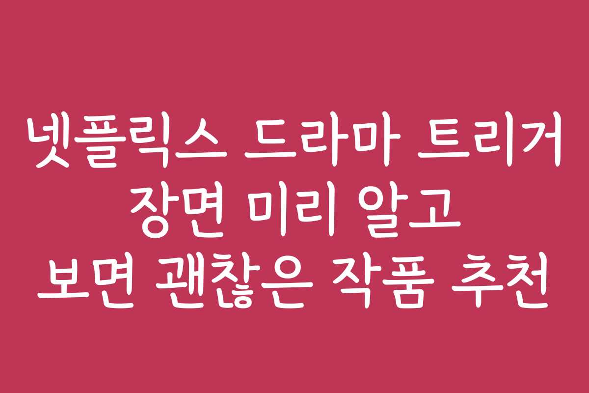 넷플릭스 드라마 트리거 장면 실전 활용 방법