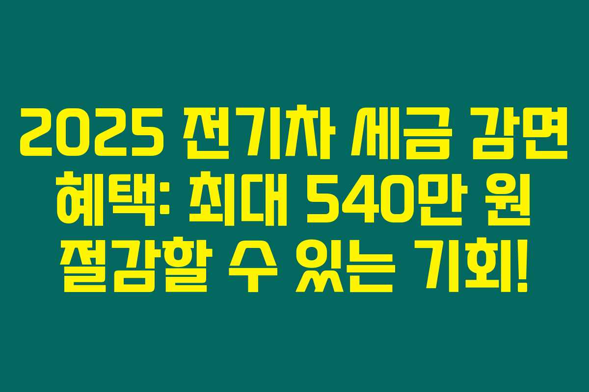 전기차 구매를 고려하고 계신가요? 그렇다면 2025년에는 꼭 알아야 할 세금 감면 혜택이 있다구요! 최대 540만 원까지 절감할 수 있는 이 기회를 놓치지 마세요. 아래를 읽어보시면 전기차 구매 시 세금 감면 혜택이 무엇인지, 어떻게 실행할 수 있는지 상세하게 정리해 드릴게요.
