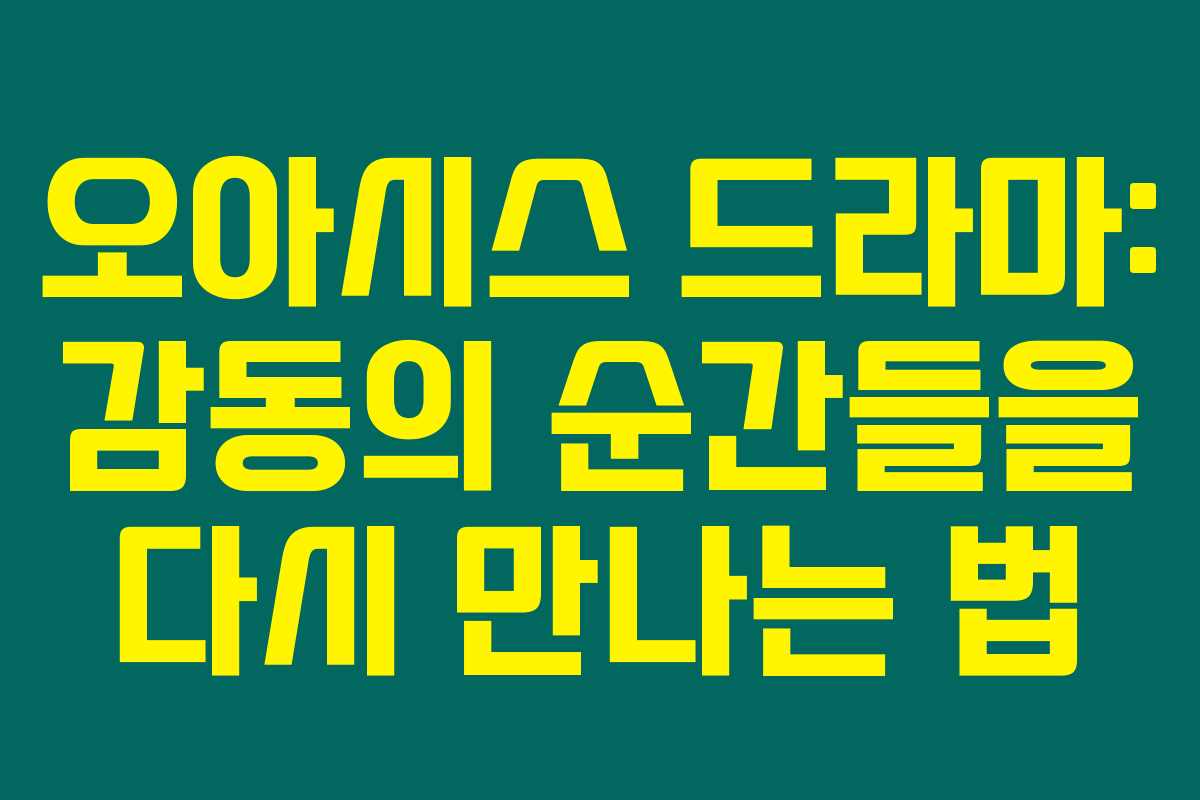 오아시스 드라마를 더욱 감동적으로 즐기는 팁