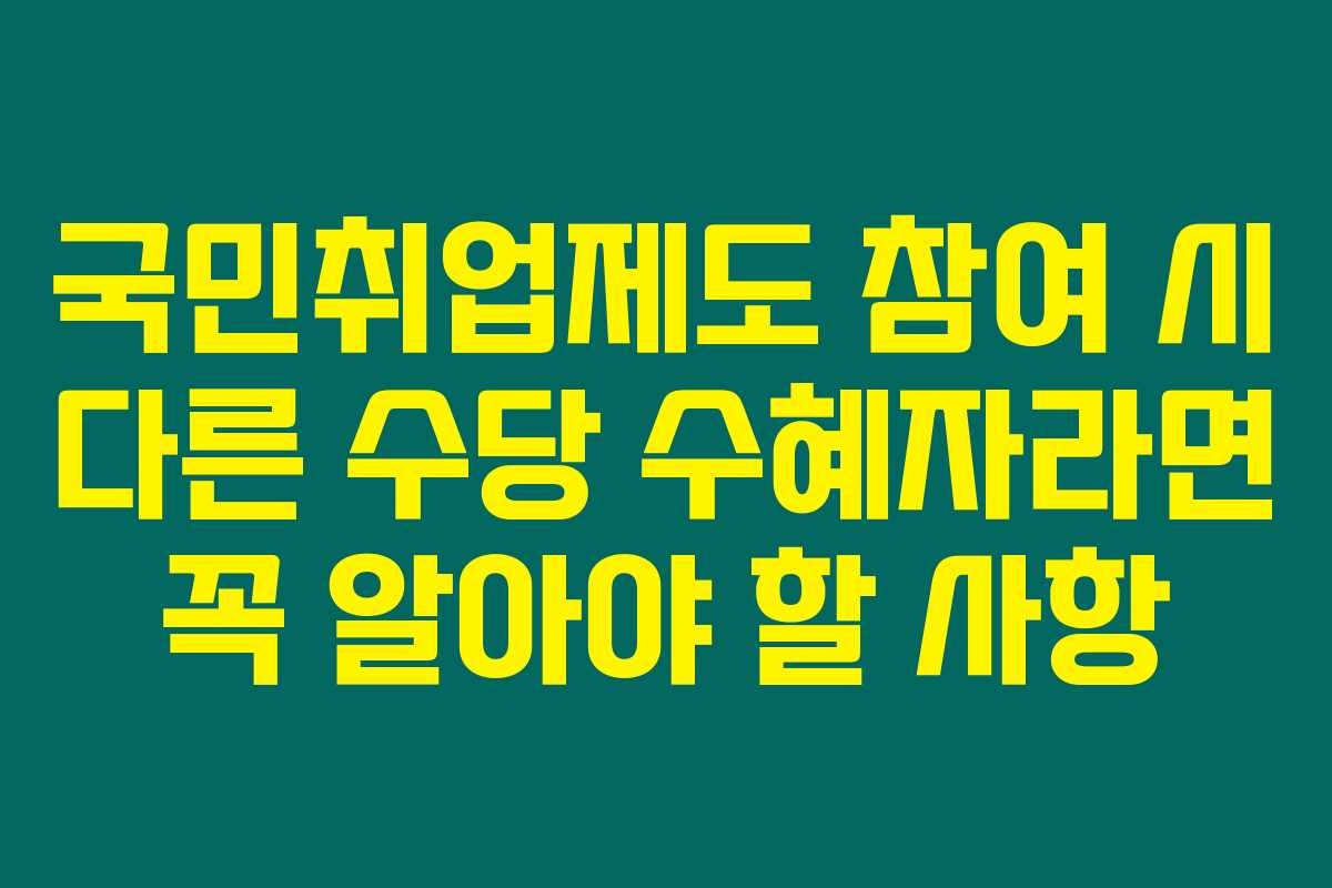 마지막으로, 위의 내용을 보시면 국민취업제도와 다른 수당 간의 관계를 파악하는데 큰 도움이 될 거예요. 다른 궁금증이 있으면 댓글로 남겨주세요.