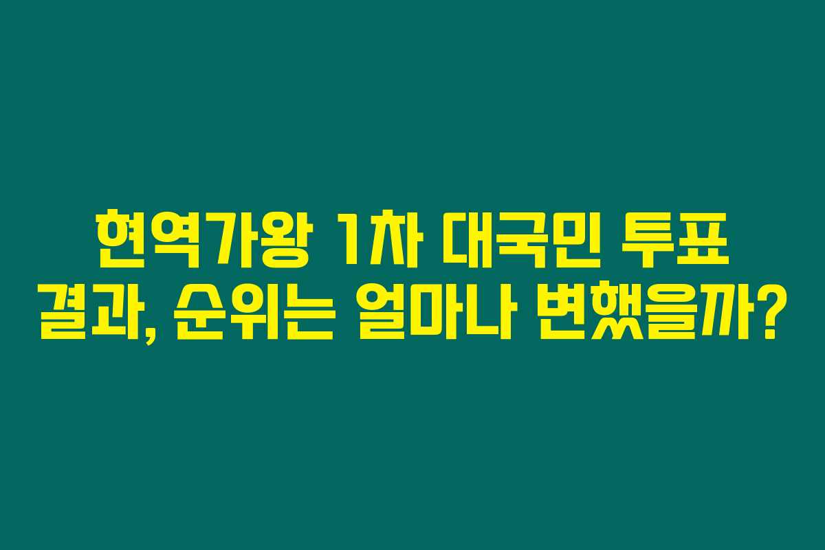 12월 12일 방송된 <현역가왕>에서 1차 대국민 투표 결과가 발표되었어요. 내가 좋아하는 가수는 몇 위를 차지했는지 궁금하지 않으신가요? 이 글을 통해서 1차 대국민 투표 결과에 대해 알아보면 좋을 것 같아요. 이 투표는 12월 6일부터 12월 11일까지 진행되었고, 가장 많은 응원을 받은 가수는 누구인지 궁금하죠?