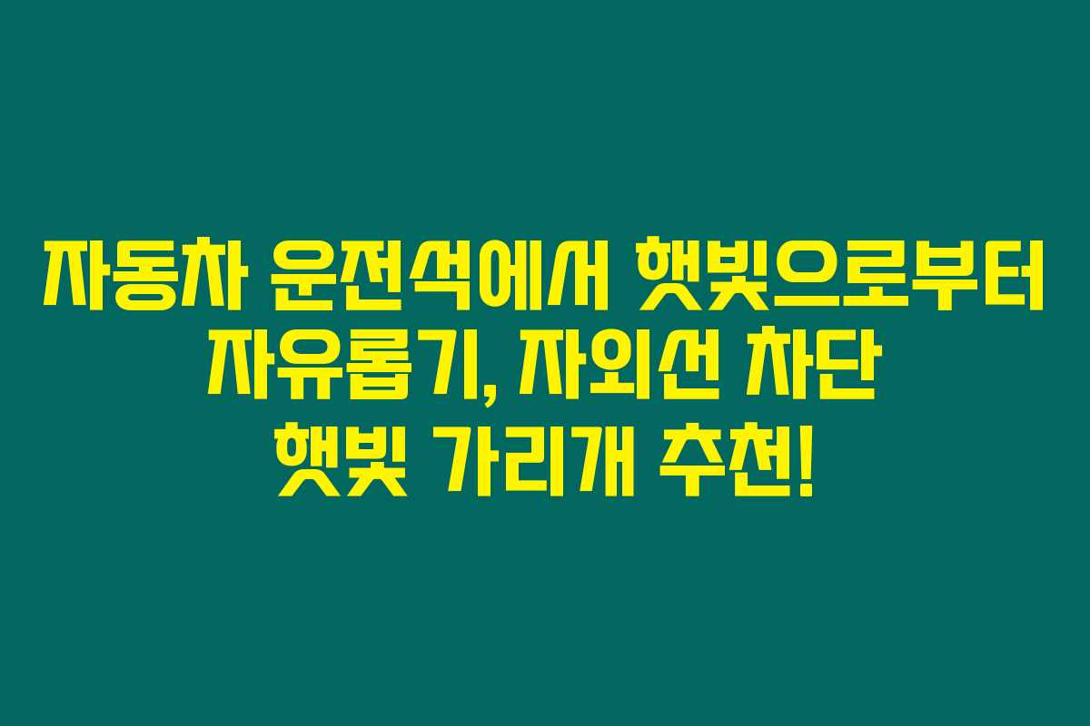 자동차 운전석의 햇빛 가리개는 자외선 차단과 안전한 운전의 필수 아이템이에요. 나를 지키기 위해 유용하게 사용할 수 있습니다. 운전 시 햇빛 가리개를 꼭 활용해보세요!