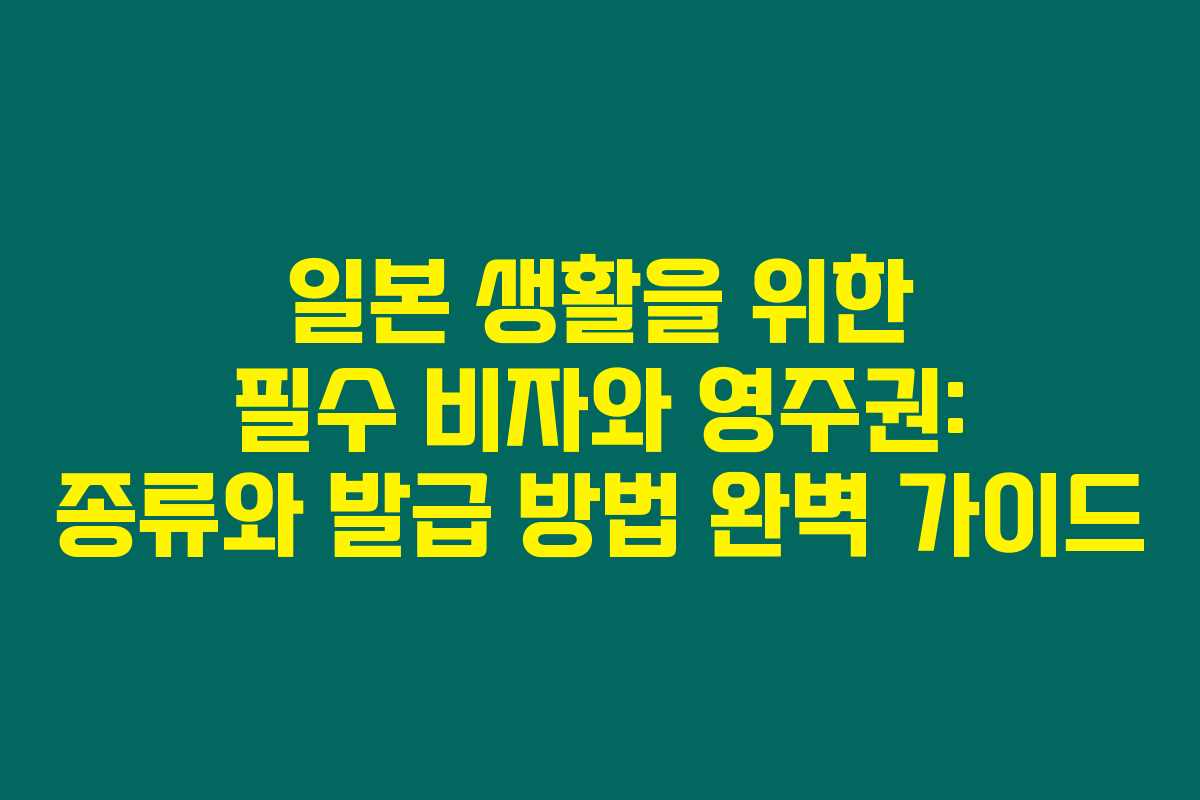 일본에서의 삶을 꿈꾸고 있다면, 적합한 비자와 영주권을 확보하는 것은 필수랍니다. 일본 비자와 영주권은 그 종류와 발급 방법이 여러 가지로 나뉘기 때문에, 어떤 비자가 나에게 맞는지 고민해 보는 것이 중요해요. 아래를 읽어보시면 일본에서의 생활을 위한 비자와 영주권의 다양한 종류를 이해하고, 필요한 조건과 방법을 알 수 있을 거예요.