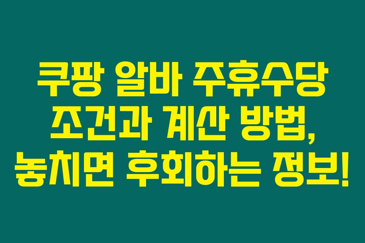 쿠팡 알바 주휴수당 조건과 계산 방법, 놓치면 후회하는 정보!