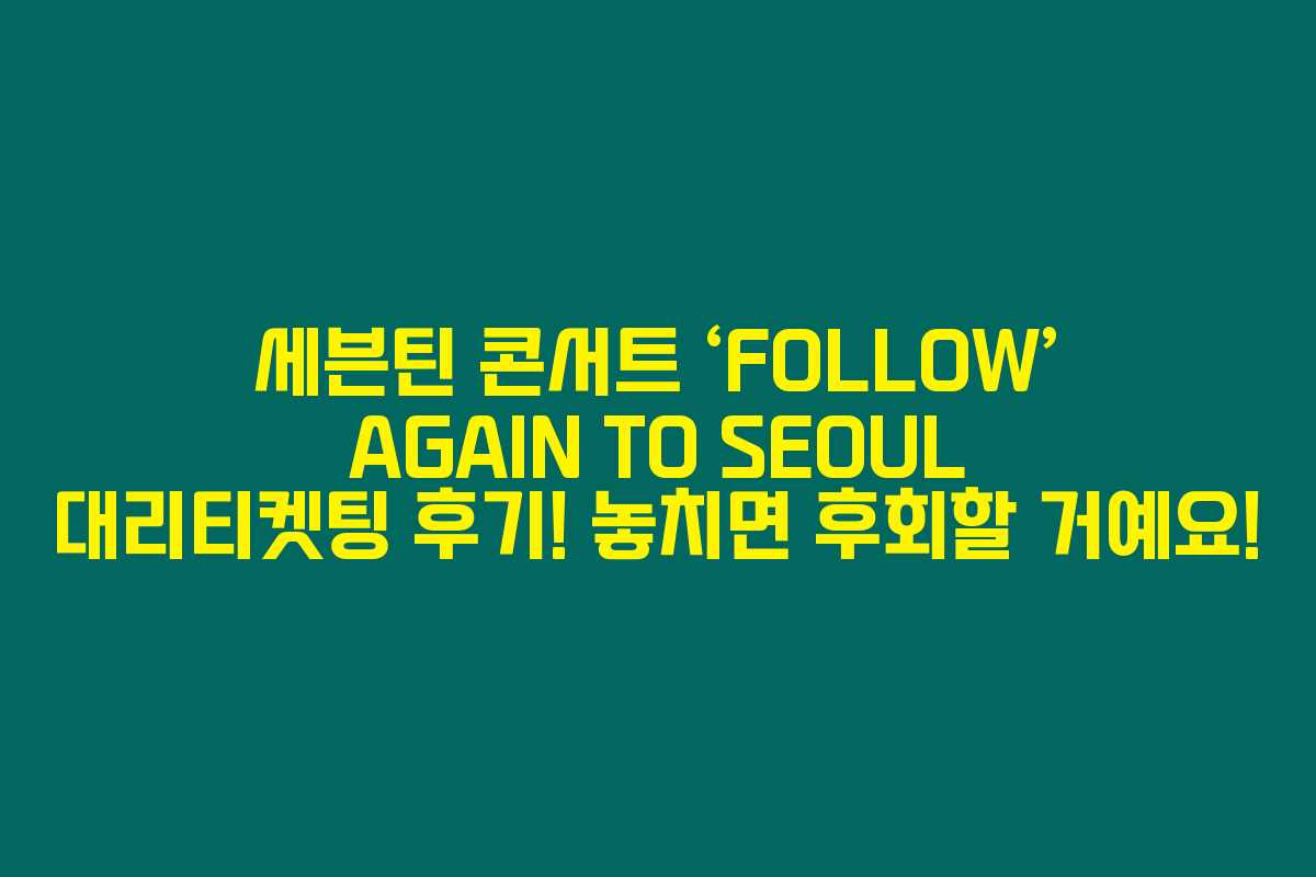 세븐틴의 콘서트 ‘FOLLOW’ AGAIN TO SEOUL이 다가오고 있어요. 패스트한 티켓팅은 정말 쉽지 않죠. 특히 대리티켓팅을 통해 성공적으로 자리를 잡으셨다면 완전 대박일 거예요. 아래를 읽어보시면 대리티켓팅에 대한 다양한 경험담과 노하우를 알차게 정리해 드릴게요!