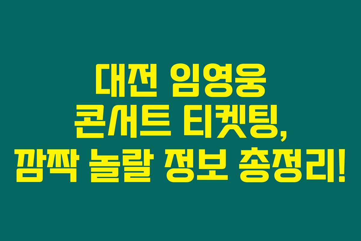 이런 대전 콘서트 티켓팅 일정은 반드시 알아두셔야 해요. 특히 대전임영웅 콘서트의 경우, 인터파크티켓에서 사전 예매할 수 있으니 참고하세요!