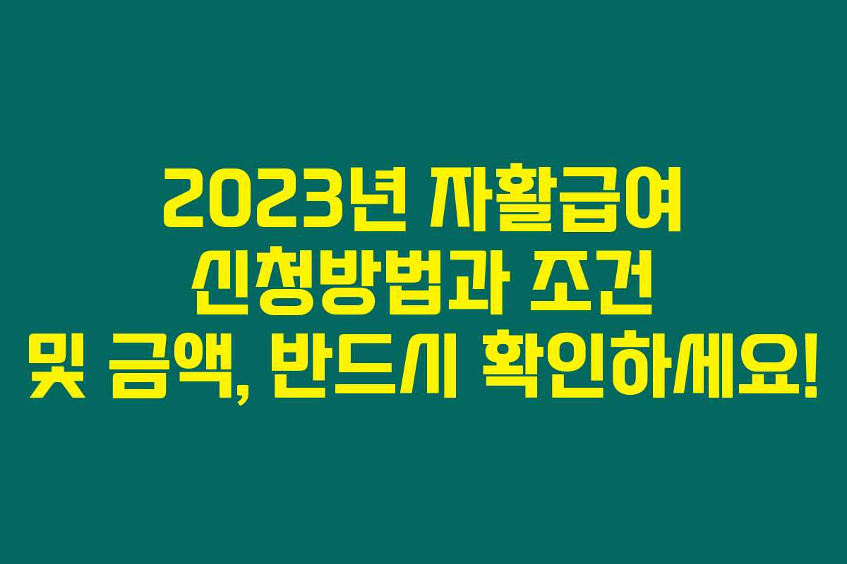 2023년 자활급여 신청방법과 조건 및 금액, 반드시 확인하세요!