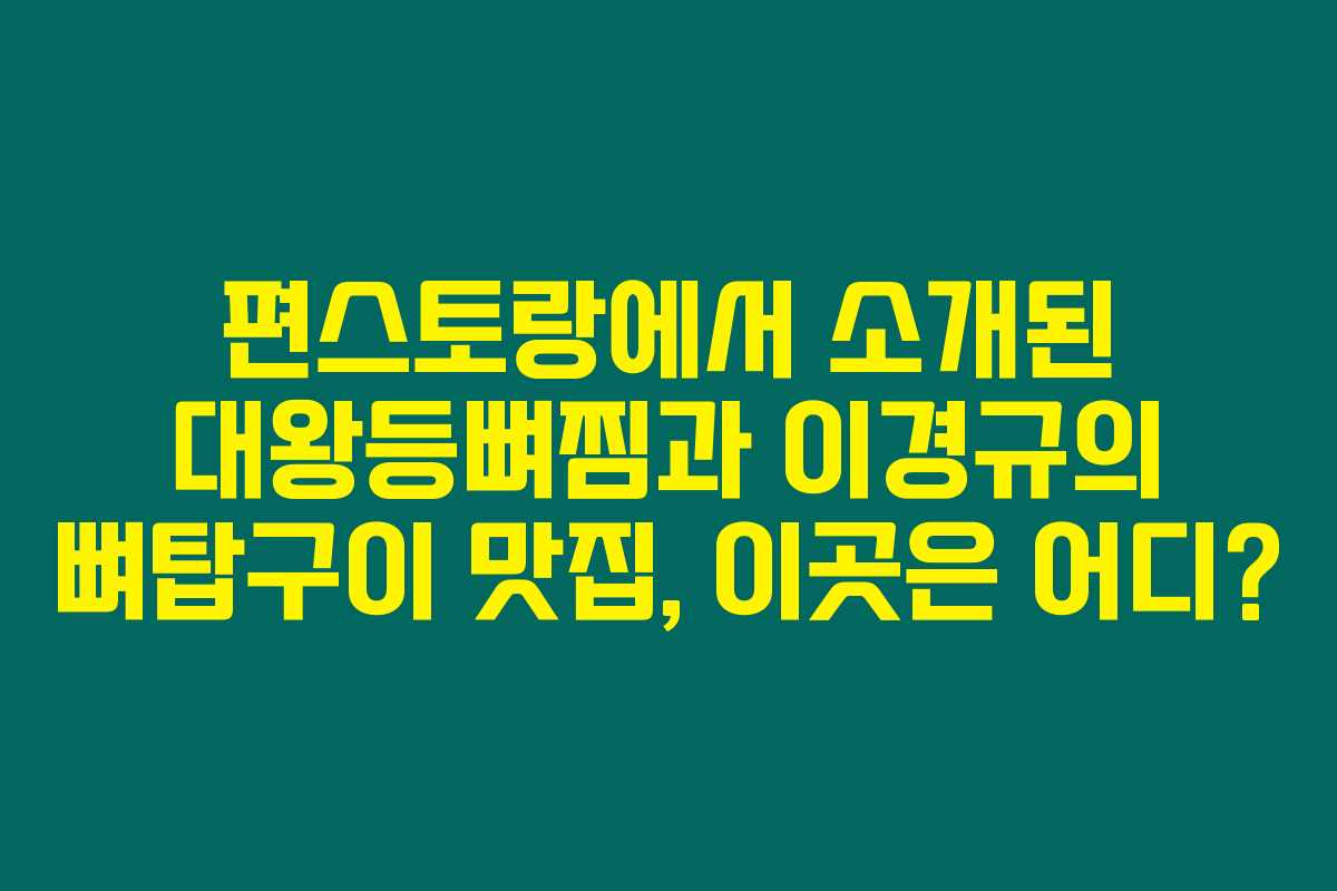 대왕등뼈찜과 곱창전골을 찾고 계신가요? 이경규의 뼈탑구이도 맛보고 싶다면, 점점 더 많은 사람들이 찾는 곳이 있는데요. 최근 방송된 KBS2의 <신상출시 편스토랑>에서 성대한 안주를 주제로 한 레시피가 소개되었답니다. 오늘은 그 장소에 대한 정보를 함께 살펴보아요. 아래를 읽어보시면, 내 입맛을 사로잡을 맛집을 찾는 데에 큰 도움이 될 거예요!