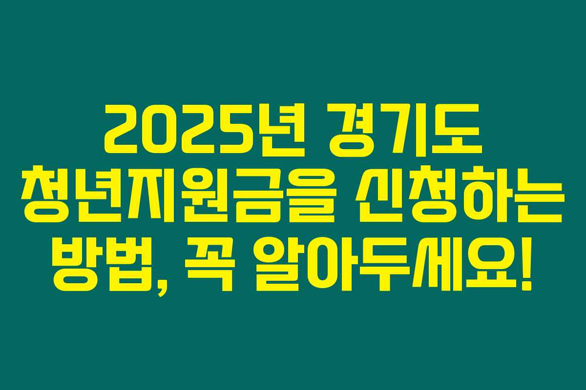 2025년 경기도 청년지원금을 신청하는 방법, 꼭 알아두세요!