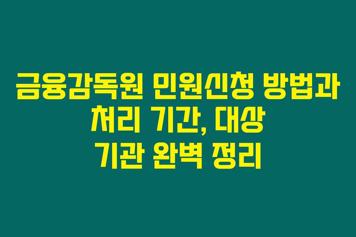 여기서 제공하는 민원 처리 기간과 대상 기관도 알아두면 좋답니다. 이 정보가 여러분의 금융 문제가 조속히 해결되는데 큰 도움이 될 거예요!