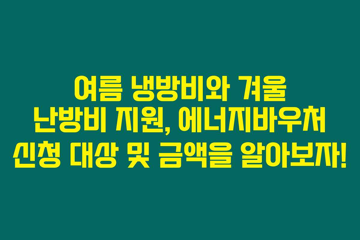 여름철의 폭염과 겨울철의 추위, 이로 인해 많은 가정에서 냉방비와 난방비에 대한 부담이 커지고 있죠. 특히 저소득 가구에게는 실질적 도움을 주는 에너지바우처 프로그램이 있습니다. 아래를 읽어보시면 신청 대상과 지원 금액에 대한 상세 정보를 통해 필요한 사람들에게 큰 도움이 될 수 있습니다. 관심이 있는 분들은 놓치지 마세요!
