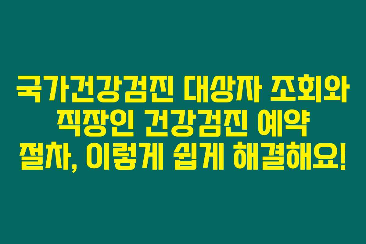 정기적인 건강검진은 우리 건강을 지키는 기본 중의 기본이죠! 많은 분들이 국가건강검진을 받으실 수 있다는 걸 모르고 계시는 경우가 많아요. 건강검진을 통해 자신의 건강 상태를 주기적으로 체크할 수 있다는 사실, 정말 중요한데요! 이번 글에서는 국가건강검진 대상자 조회 방법과 직장인 건강검진 예약 절차를 상세히 안내해드릴게요. 아래를 읽어보시면 귀찮고 복잡한 과정을 쉽게 해결할 수 있답니다.