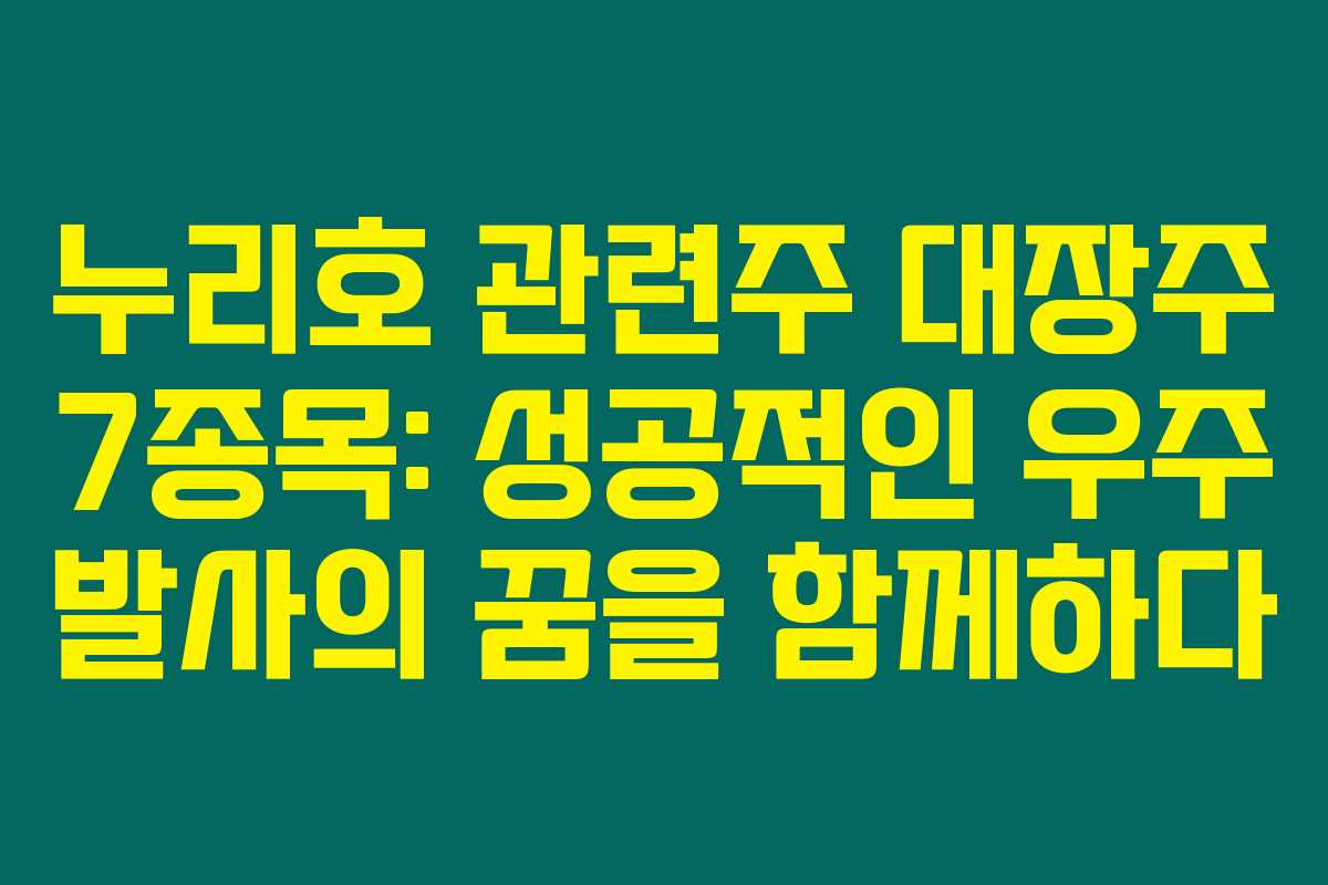 누리호 관련주 대장주 7종목: 성공적인 우주 발사의 꿈을 함께하다