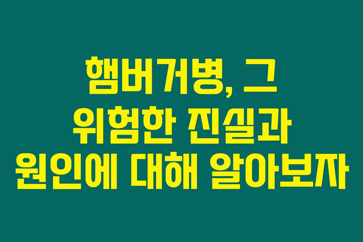 햄버거병은 우리가 흔히 먹는 음식에서 발생할 수 있는 위험한 질병입니다. 이 병의 원인과 예방을 제대로 알고 실천한다면, 맛있는 햄버거를 안전하게 즐길 수 있습니다. 외식하는 곳에서도 위생 관리에 철저히 신경 쓰길 바랍니다.
