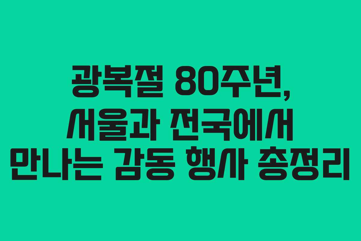 아래를 읽어보시면 서울의 공식 기념행사부터 전국의 전시·축제까지 80주년 기념으로 마련된 행사 정보를 한눈에 확인할 수 있습니다. 일정 요약과 참여 방법, 가족 체험 포인트를 담아 정리했습니다.