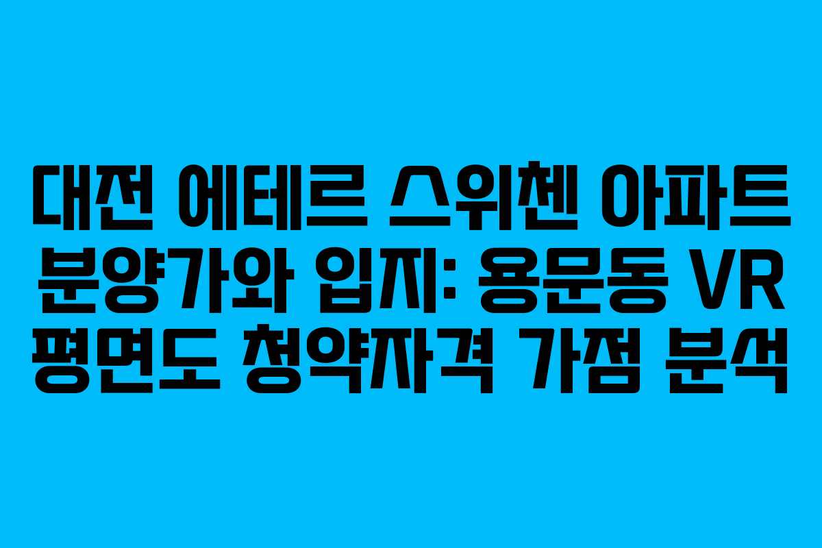 대전 에테르 스위첸 아파트 분양가와 입지: 용문동 VR 평면도 청약자격 가점 분석