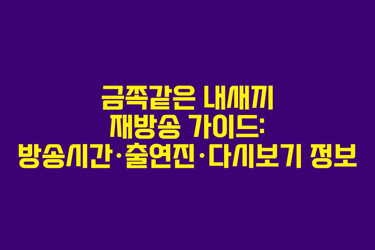 금쪽같은 내새끼의 재방송 정보를 한눈에 정리했습니다. 방송시간과 채널, 출연진의 특징, 다시보기 서비스의 요금 비교를 한 페이지에 모았습니다. 기기 지원 여부와 다운로드 여부도 함께 확인해보세요. 아래를 읽어보시면 최신 이용 가이드와 체크리스트를 얻을 수 있습니다.