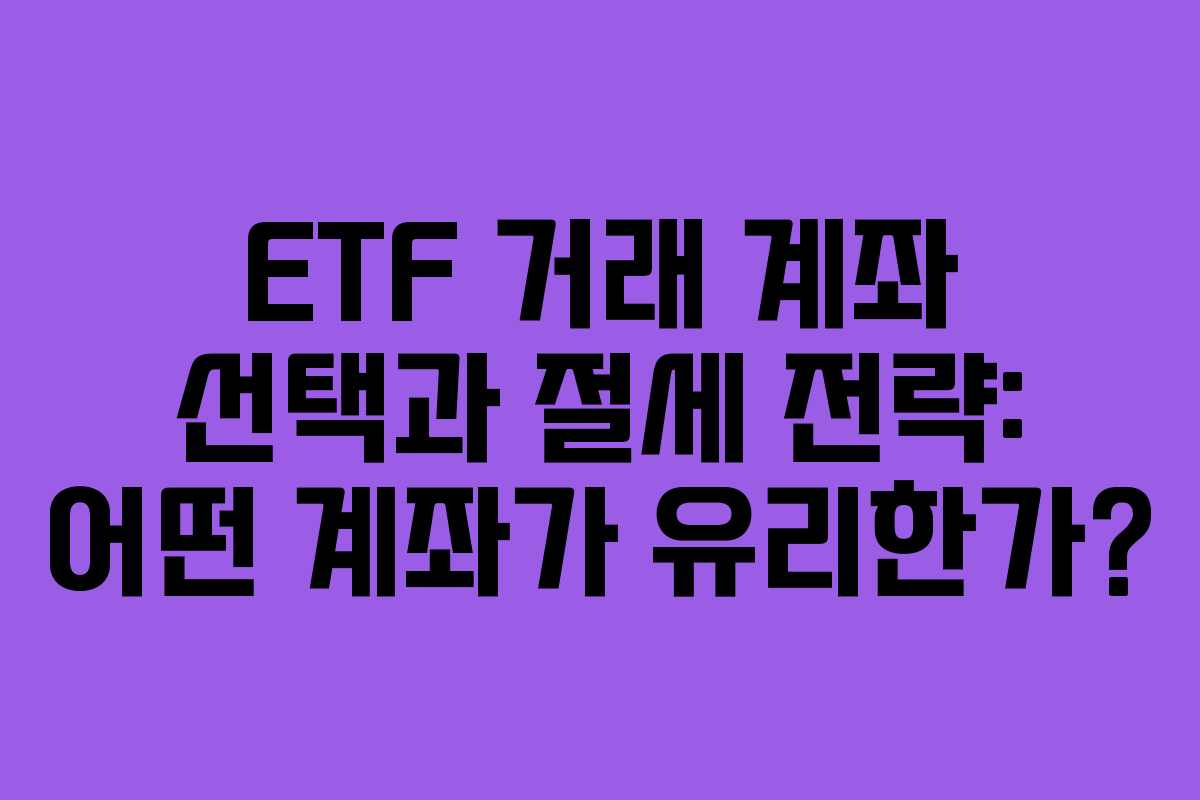 아래를 읽어보시면 ETF 거래에서 어떤 계좌를 선택하는 것이 유리한지, 국내주식형 ETF와 기타 ETF의 절세 포인트, ISA/연금계좌의 활용 방법, 그리고 2023년 도입 예정인 금융투자소득세 변화까지 포괄적으로 정리합니다.