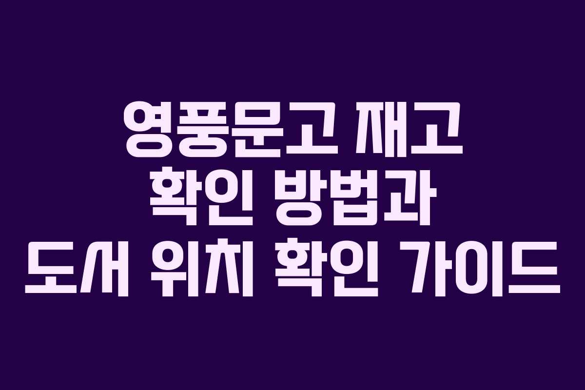 영풍문고 오프라인 재고 확인이 가능한가요?