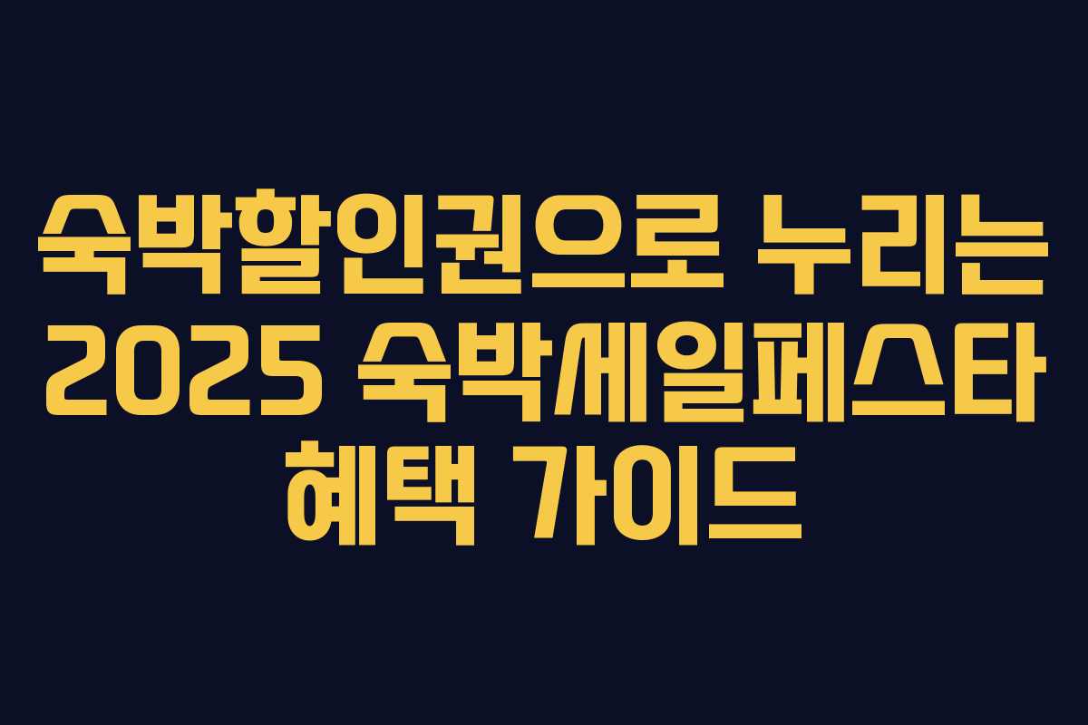 숙박할인권으로 누리는 2025 숙박세일페스타 혜택 가이드
