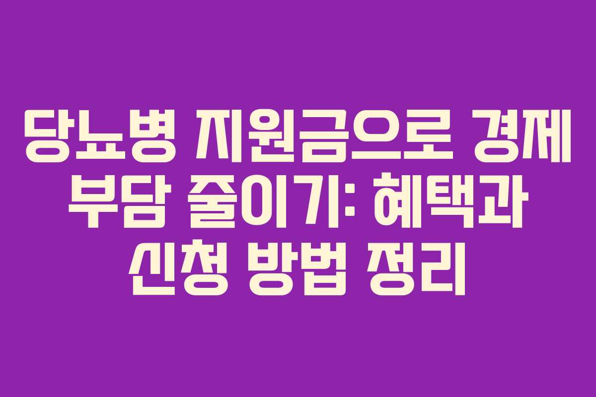 아래를 읽어보시면 당뇨병 환자가 받을 수 있는 다양한 지원금 혜택과 신청 요건, 방법을 한눈에 확인하실 수 있습니다.