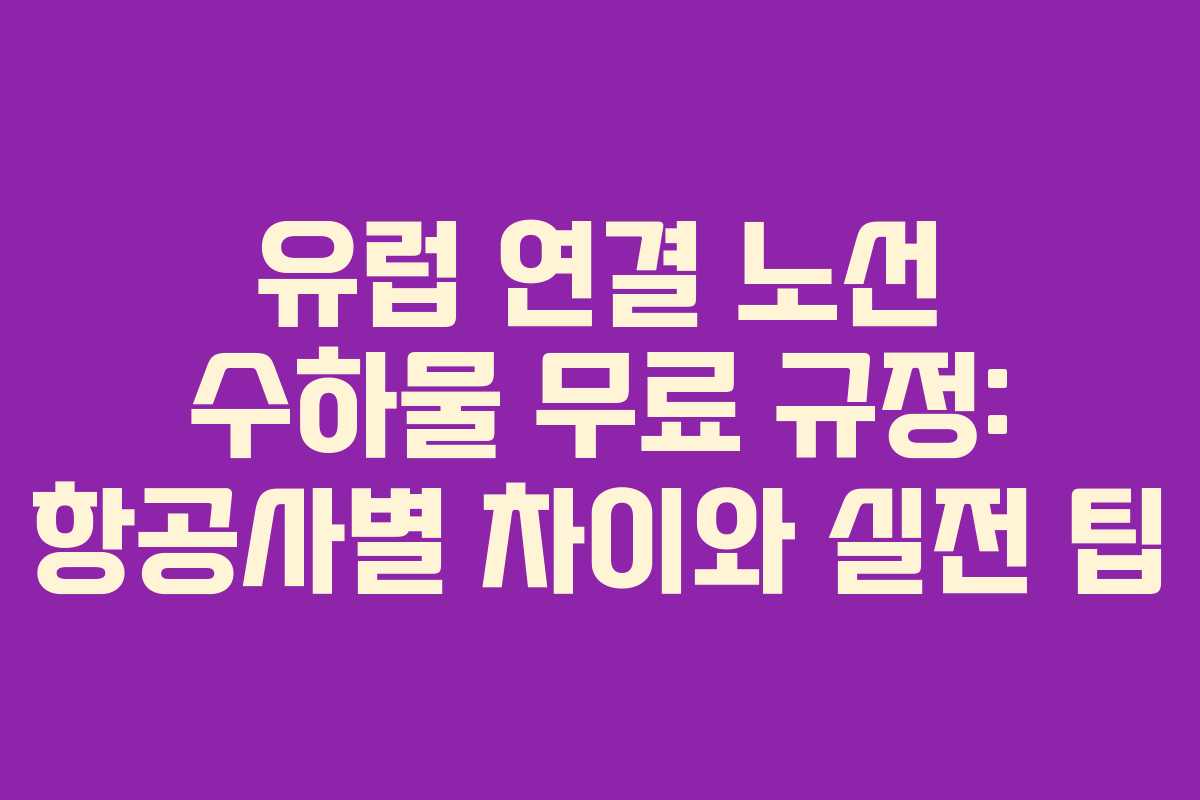 키워드: 유럽 연결 노선 수하물 무료 규정, 수하물 무료 기준, 위탁 수하물 규정, 기내 반입 수하물 규정, 개수제 vs 무게제, 항공사 비교, 회원 등급 혜택, 코드쉐어 주의, 예산여행 팁, 항공권 발권 시점, 노선별 규정 업데이트,