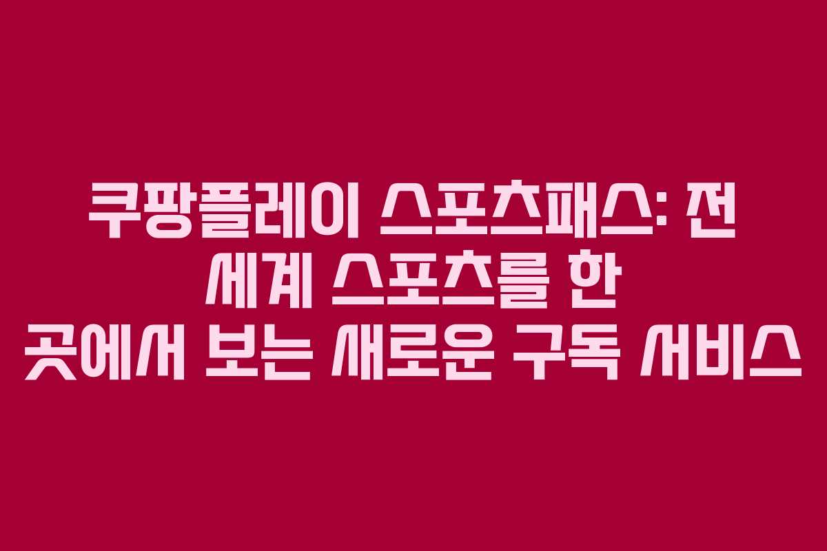 – 메인 키워드: 쿠팡플레이 스포츠패스