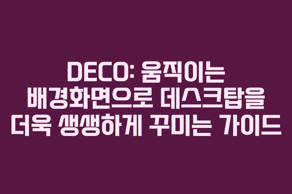DECO를 중심으로 웰페이퍼 엔진으로 구현 가능한 움직이는 배경화면의 선택과 적용법을 한눈에 정리합니다. 본문은 설치부터 테마 관리, 성능 팁까지 포괄적으로 다룹니다.