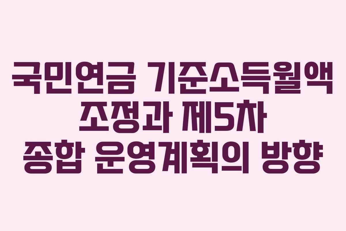 3월에 확정될 재정추계 결과를 바탕으로 제5차 종합 운영계획의 초안을 마련하고, 연내 국회에 제출하는 것을 목표로 합니다. 계획안은 제도 안정성과 사회적 합의를 함께 담아내려는 방향으로 구성될 예정입니다.
