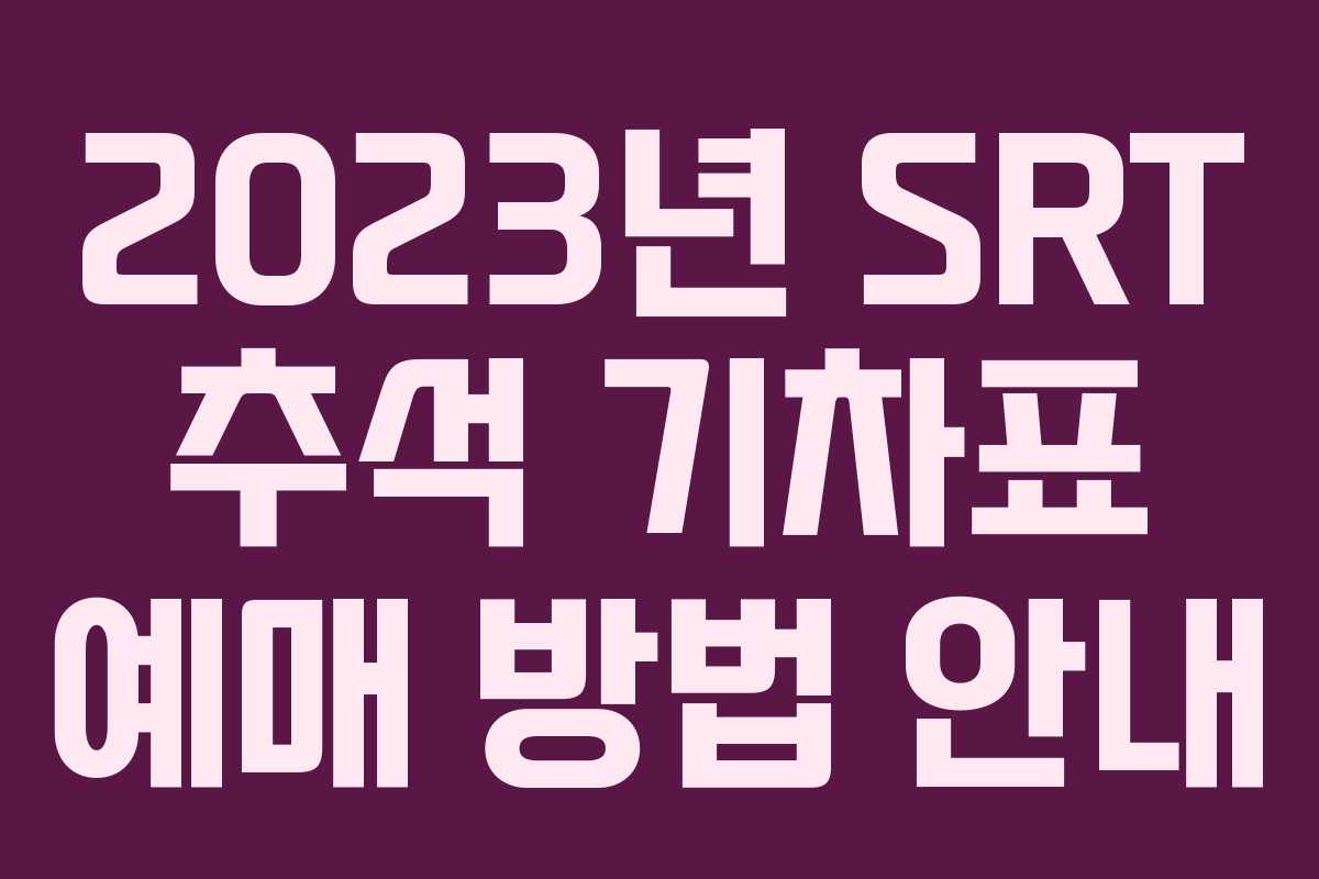 2023년 추석 기차표 예매를 위한 SRT의 비대면 예약 방법과 관련된 정보를 제공합니다. 이 글에서는 예매 일정, 결제 기간, 환불 정책 등 유용한 정보를 정리했습니다.