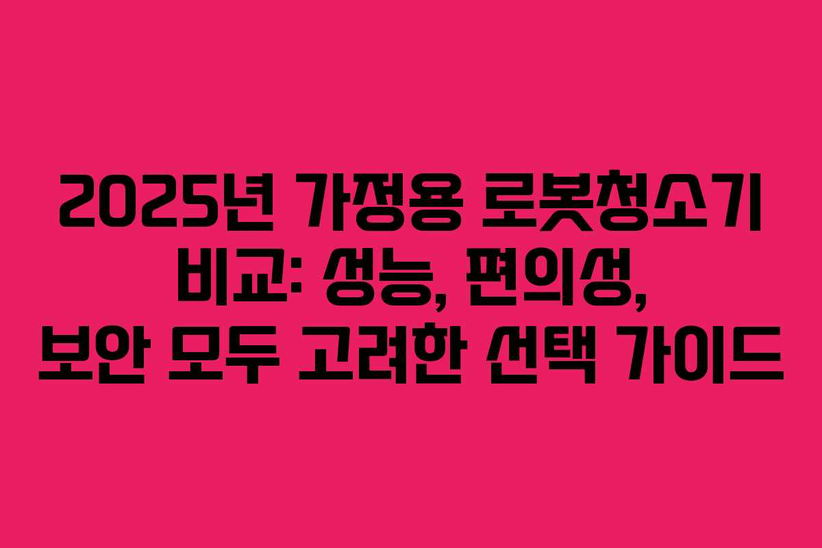 2025년 가정용 로봇청소기 시장에서는 LG, 로보락, 삼성의 최신 제품들이 주목받고 있습니다. 이 글에서는 각 제품의 성능, 편의성, 보안 측면을 비교하여 최적의 선택을 돕고자 합니다.