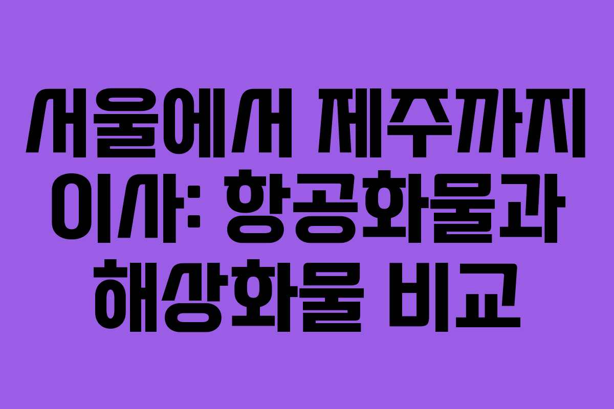 서울에서 제주까지의 이사는 많은 이들에게 특별한 경험이 될 수 있습니다. 이 과정에서 항공화물과 해상화물은 각각의 장단점을 가지고 있어, 상황에 따라 적합한 방법을 선택할 수 있습니다. 이 글에서는 두 가지 방법을 비교하여 이사 비용, 속도, 편의성 등을 살펴보겠습니다.