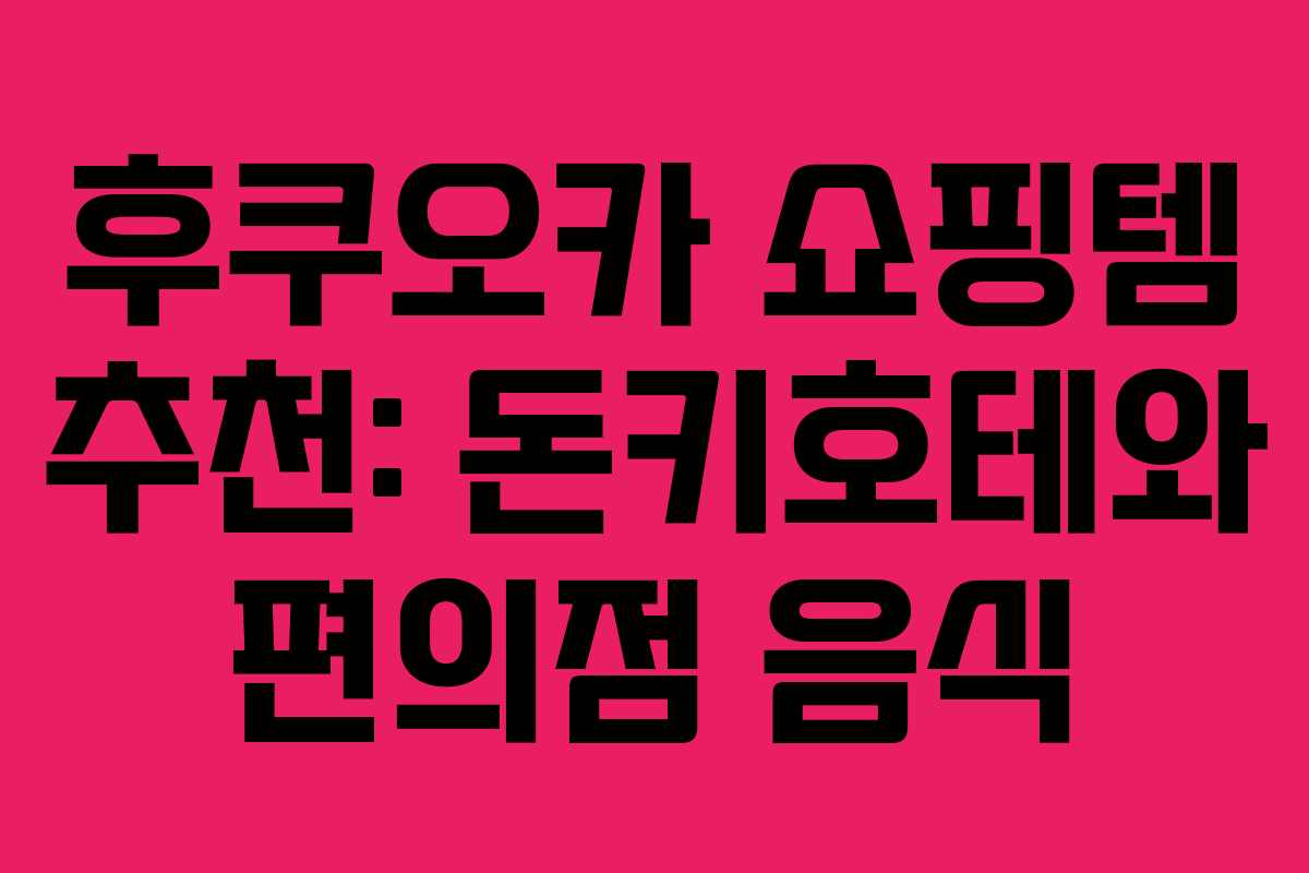 후쿠오카에서의 자유 여행 중 쇼핑한 아이템들을 소개합니다. 특히 돈키호테와 편의점에서 구매한 특별한 상품들입니다. 이 글에서는 후쿠오카의 인기 쇼핑 장소와 추천 제품들을 다루겠습니다.