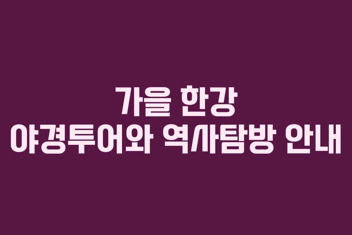 가을의 한강은 특별한 경험을 선사합니다. 서울시는 9월 5일부터 10월 18일까지 매주 금요일과 토요일에 진행되는 ‘한강야경투어’와 11월 30일까지 운영되는 ‘한강역사탐방’ 프로그램을 통해 시민들에게 무료로 다양한 경험을 제공합니다.
