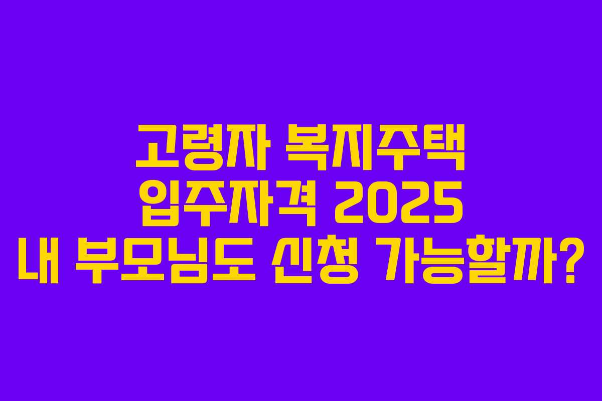고령자 복지주택 입주자격 2025 내 부모님도 신청 가능할까?