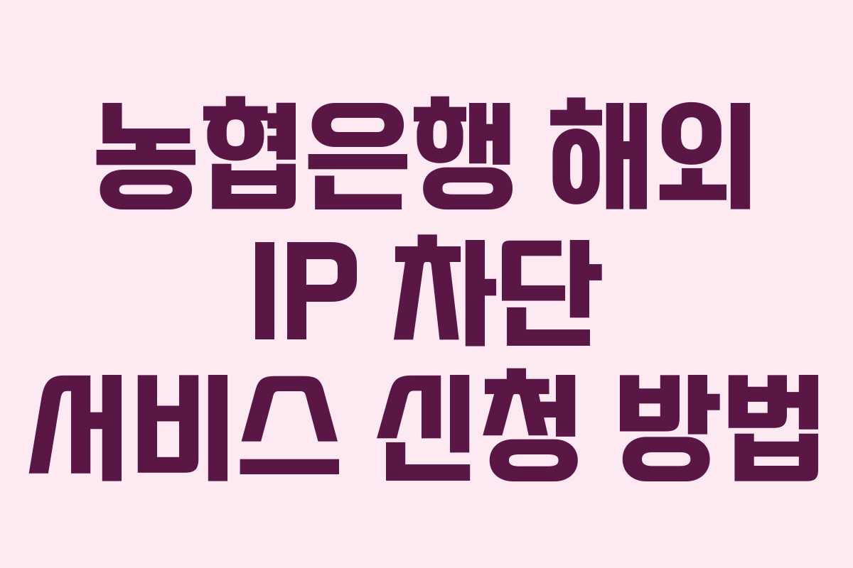 농협은행 홈페이지의 전체메뉴에서 ‘뱅킹관리 > 보안서비스 > 기타보안서비스 > 해외IP차단서비스’를 통해 신청할 수 있으며, 영업점에서도 가능합니다.