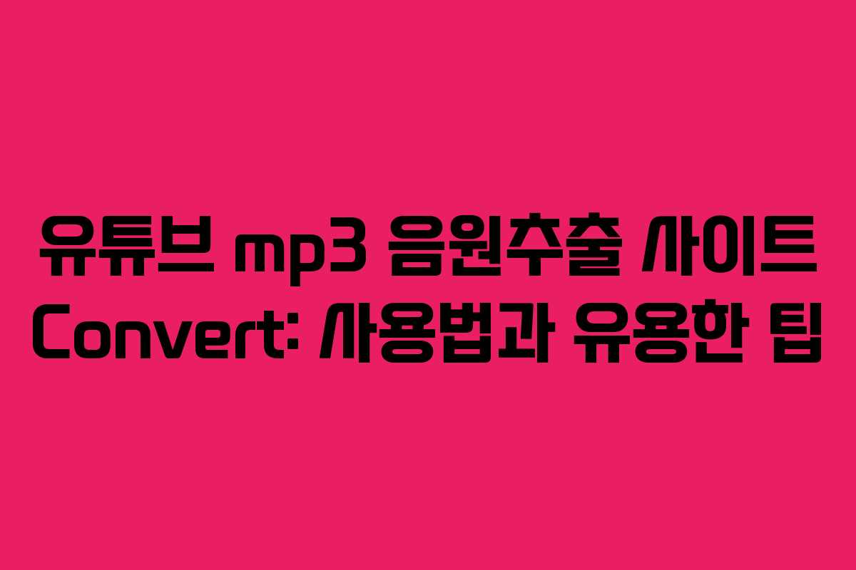 유튜브 mp3 음원추출 사이트 Convert: 사용법과 유용한 팁