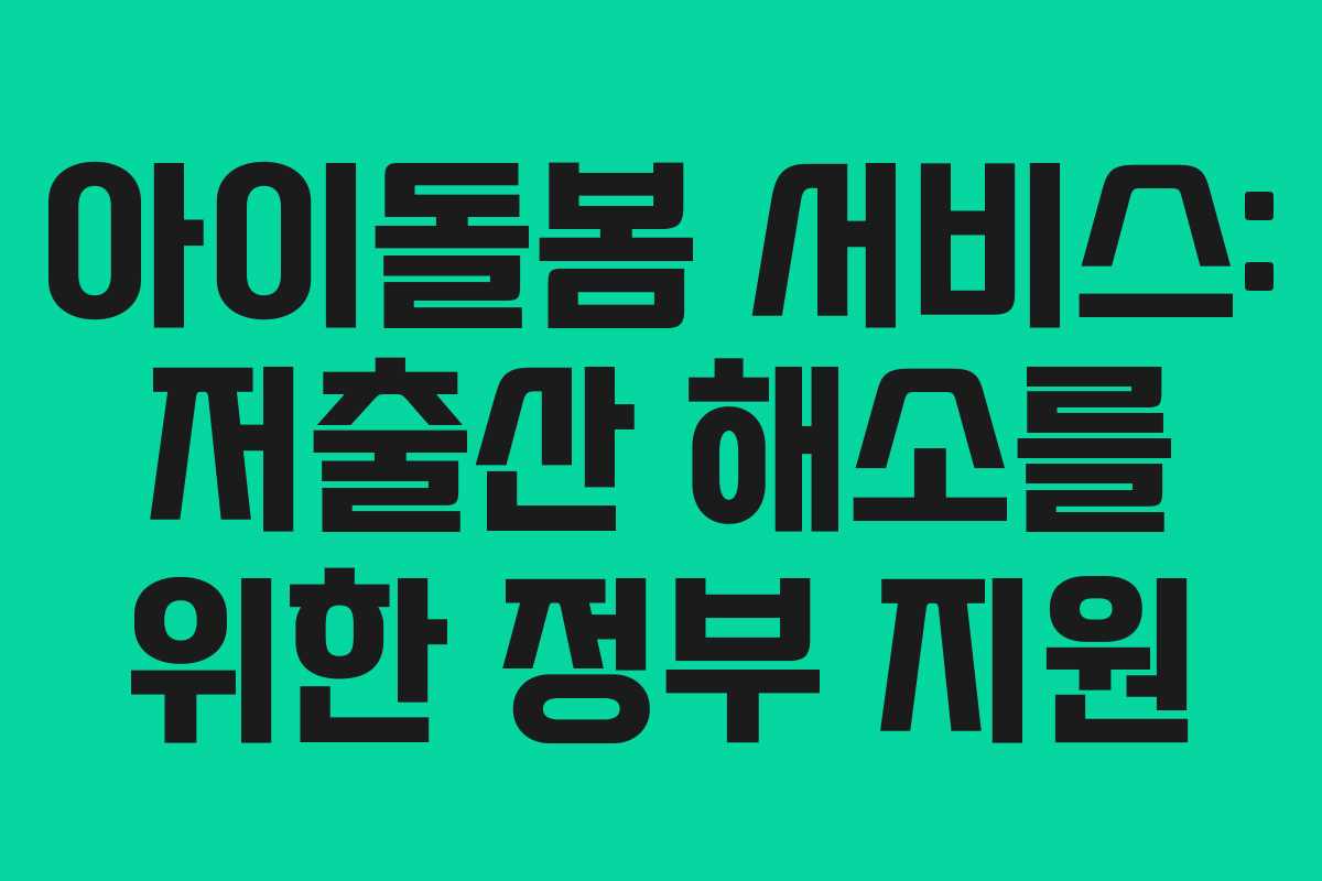 최근 저출산 문제는 사회적으로 큰 이슈가 되고 있습니다. 정부는 부모의 맞벌이 등으로 발생하는 양육 공백을 해소하기 위해 아이돌봄 서비스 지원사업을 시행하고 있습니다. 이 서비스는 만 12세 이하 아동을 둔 가정에 아이돌보미가 직접 찾아가 돌봐주는 프로그램으로, 부모의 양육 부담을 줄이는 데 큰 도움을 주고 있습니다.