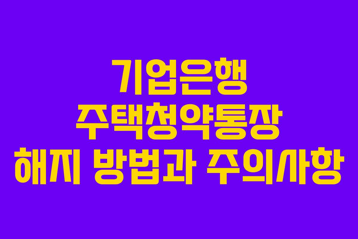 주택청약통장은 내 집 마련을 위한 중요한 수단으로, 때로는 해지가 필요할 수 있습니다. 청약 당첨, 급전 필요, 또는 다른 투자 계획 등 다양한 이유로 청약통장을 해지하고자 하는 분들을 위해 기업은행 주택청약통장 해지 방법과 절차를 자세히 알아보겠습니다.