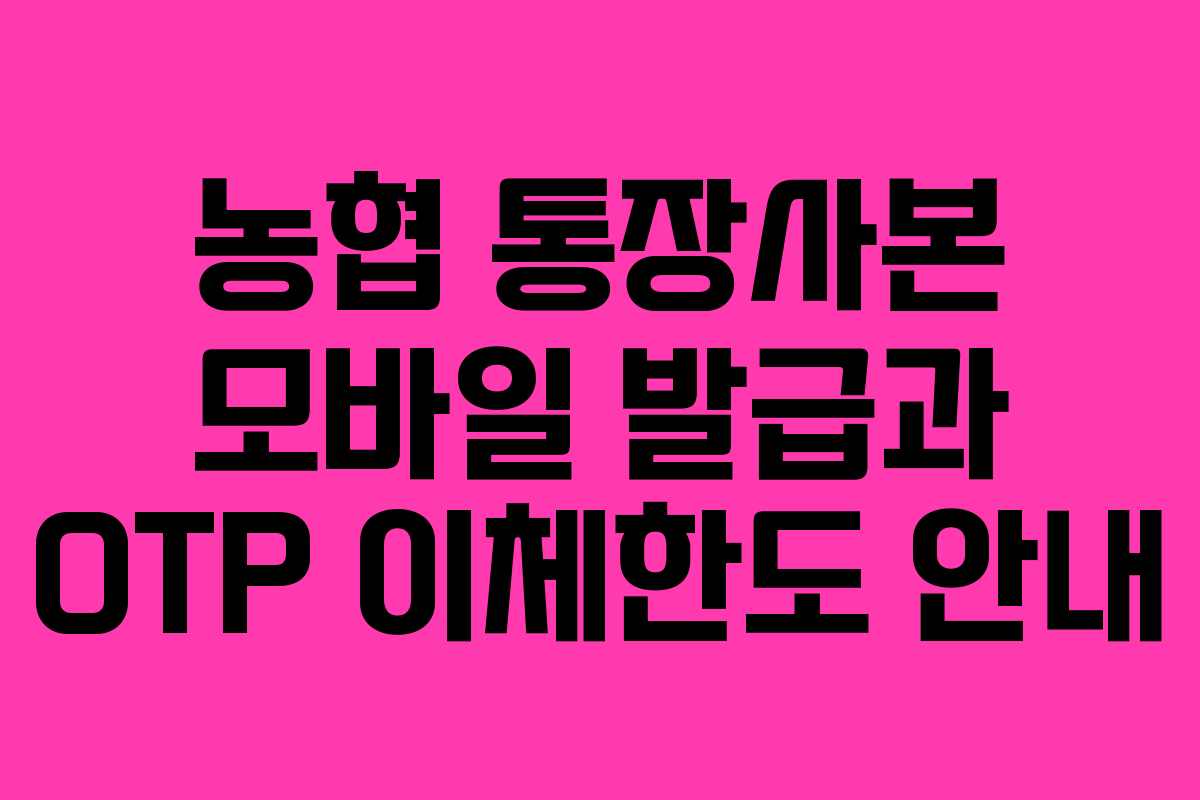 농협의 통장사본을 모바일로 쉽게 발급받고, OTP 이체한도에 대해 알아보겠습니다. 이러한 정보는 금융 거래를 보다 원활하게 해주며, 필요한 내용을 손쉽게 확인할 수 있도록 도와줍니다.
