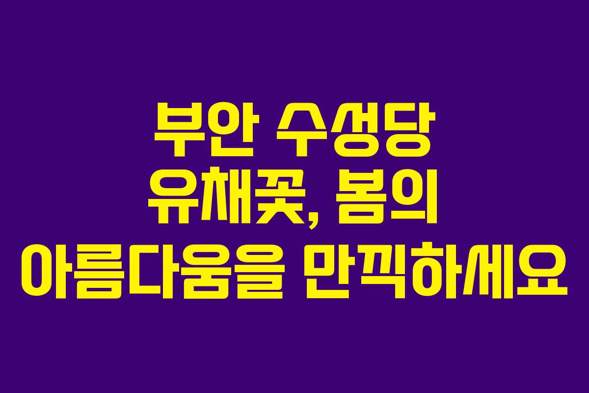 부안 수성당은 매년 봄, 황금빛 유채꽃이 만개하여 아름다운 풍경을 선사하는 명소입니다. 이곳은 유채꽃으로 가득 찬 넓은 밭과 푸른 바다의 조화로 많은 이들에게 사랑받고 있습니다. 2024년의 유채꽃 개화 시기는 4월 중순부터 시작되어 5월 초까지 가장 아름다운 모습을 보여줄 예정입니다.