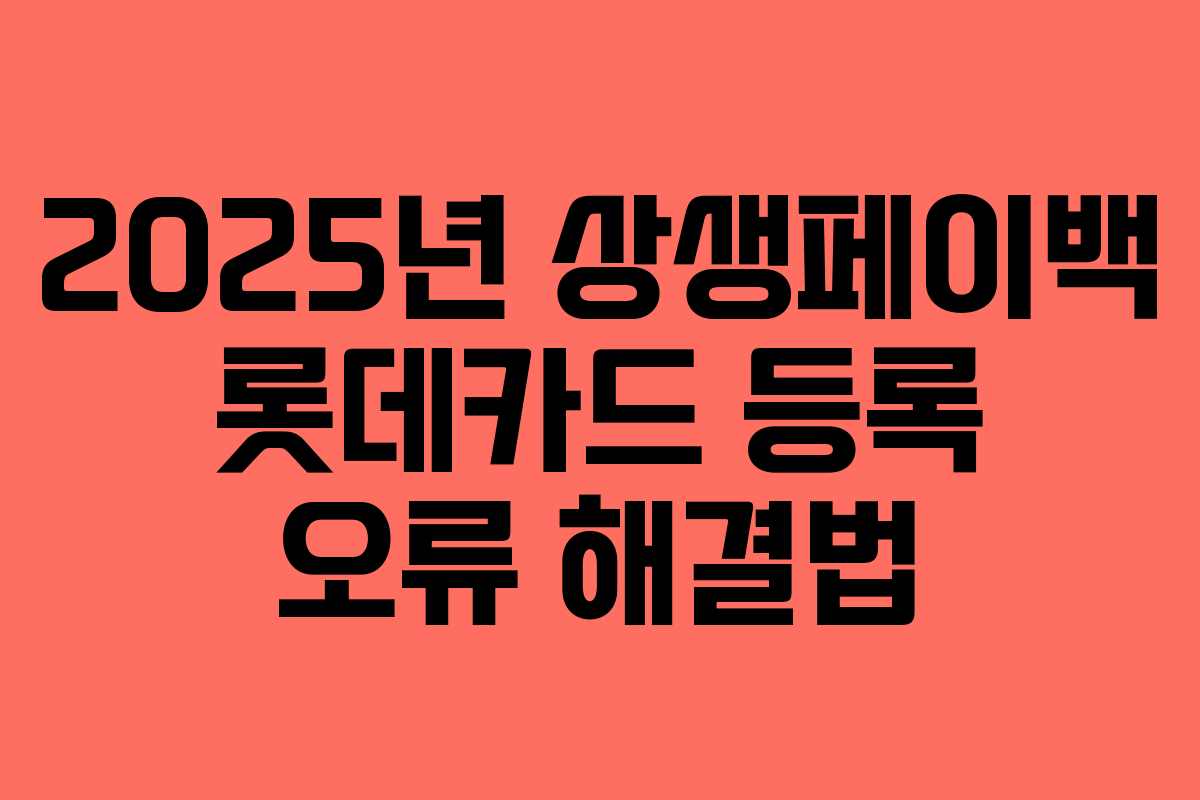 2025년 상생페이백 롯데카드 등록 오류 해결법