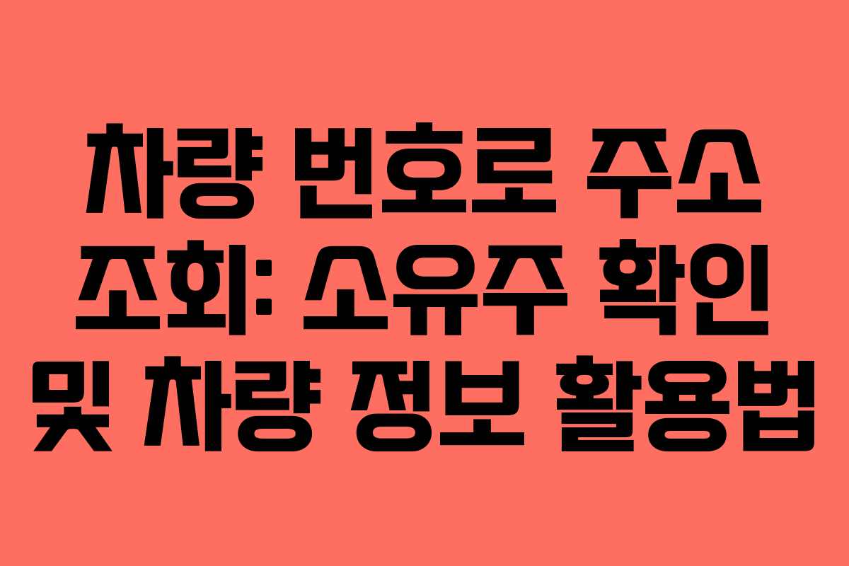 차량 번호로 주소 조회: 소유주 확인 및 차량 정보 활용법