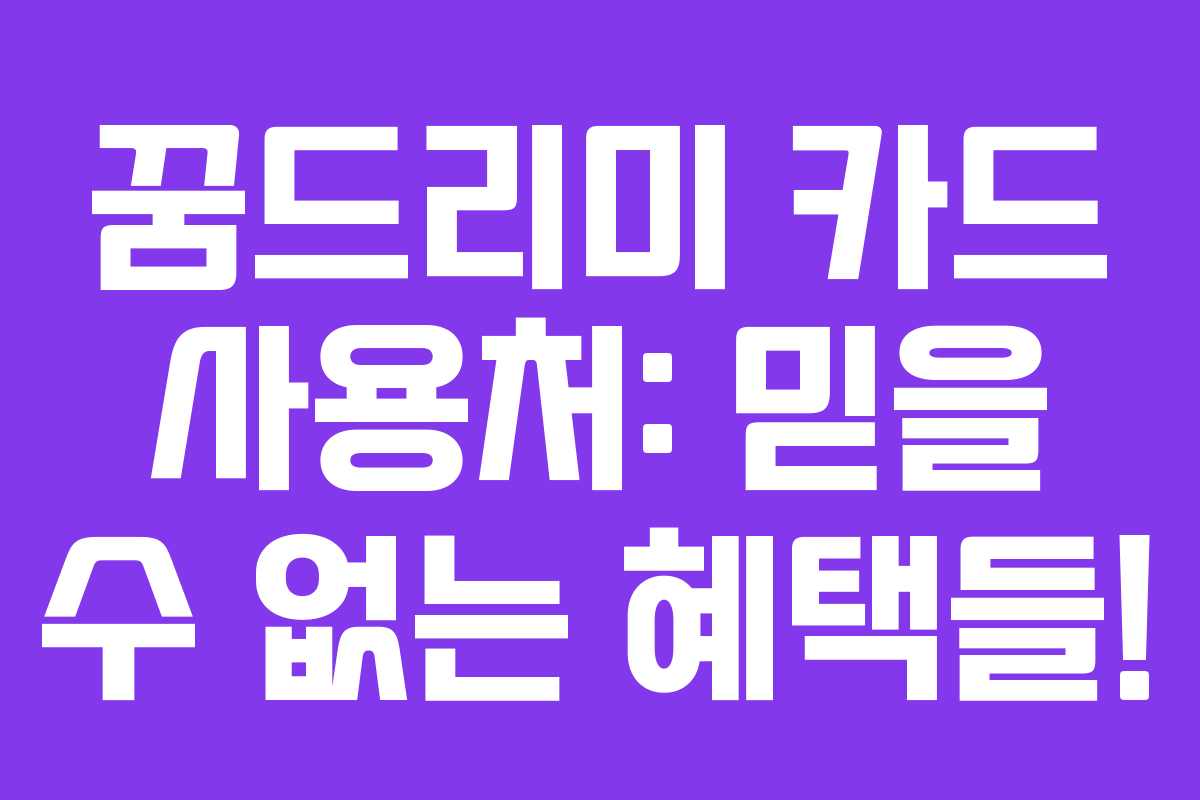 꿈드리미 카드는 단순한 결제 수단을 넘어서, 우리의 일상에 작은 기쁨을 더해주는 존재입니다. 다양한 혜택을 통해 소비를 더욱 똑똑하게 관리해보세요!
