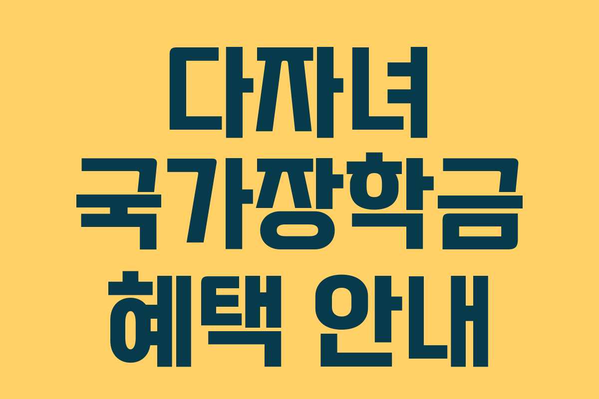다자녀 국가장학금은 국내 대학에 재학 중인 다자녀 가구의 학생들에게 경제적 부담을 덜어주기 위해 마련된 제도입니다. 이 장학금은 다자녀 가구의 부모들이 자녀 교육비를 지원받을 수 있도록 도와줍니다. 이 기회를 통해 장학금을 신청하여 등록금 부담을 줄이시기 바랍니다.